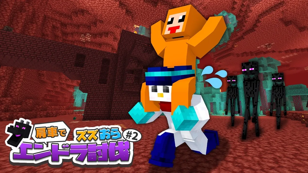 【マイクラ】肩車で ズズおら エンドラ討伐!【ドズル社/おらふくん】
