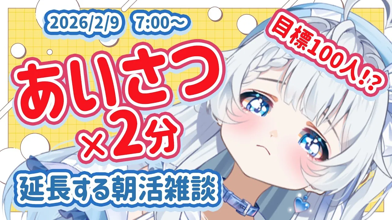 【目標100人】あいさつ×2分延長する朝活雑談!初見さんも来たことある人も大歓迎!【新人Vtuber】