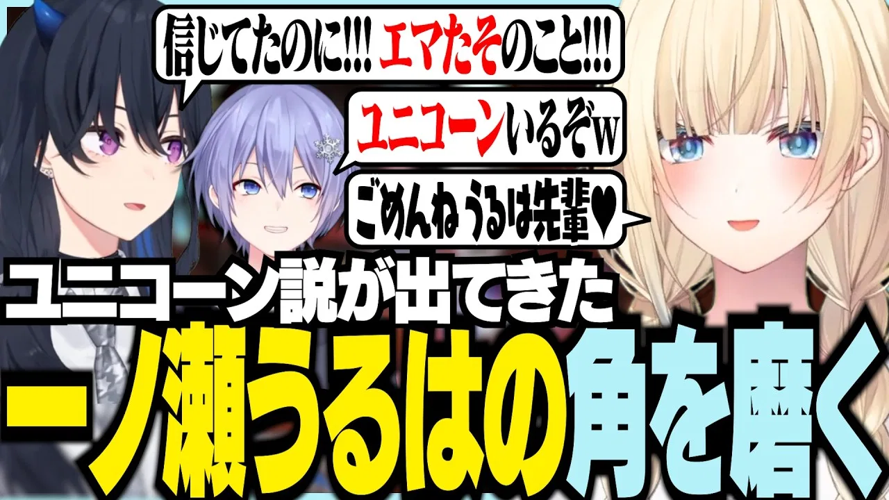 ユニコーン説が出てきた一ノ瀬うるはの角を磨く藍沢エマ【ぶいすぽっ!/ 藍沢エマ/一ノ瀬うるは/白雪レイド/APEX】