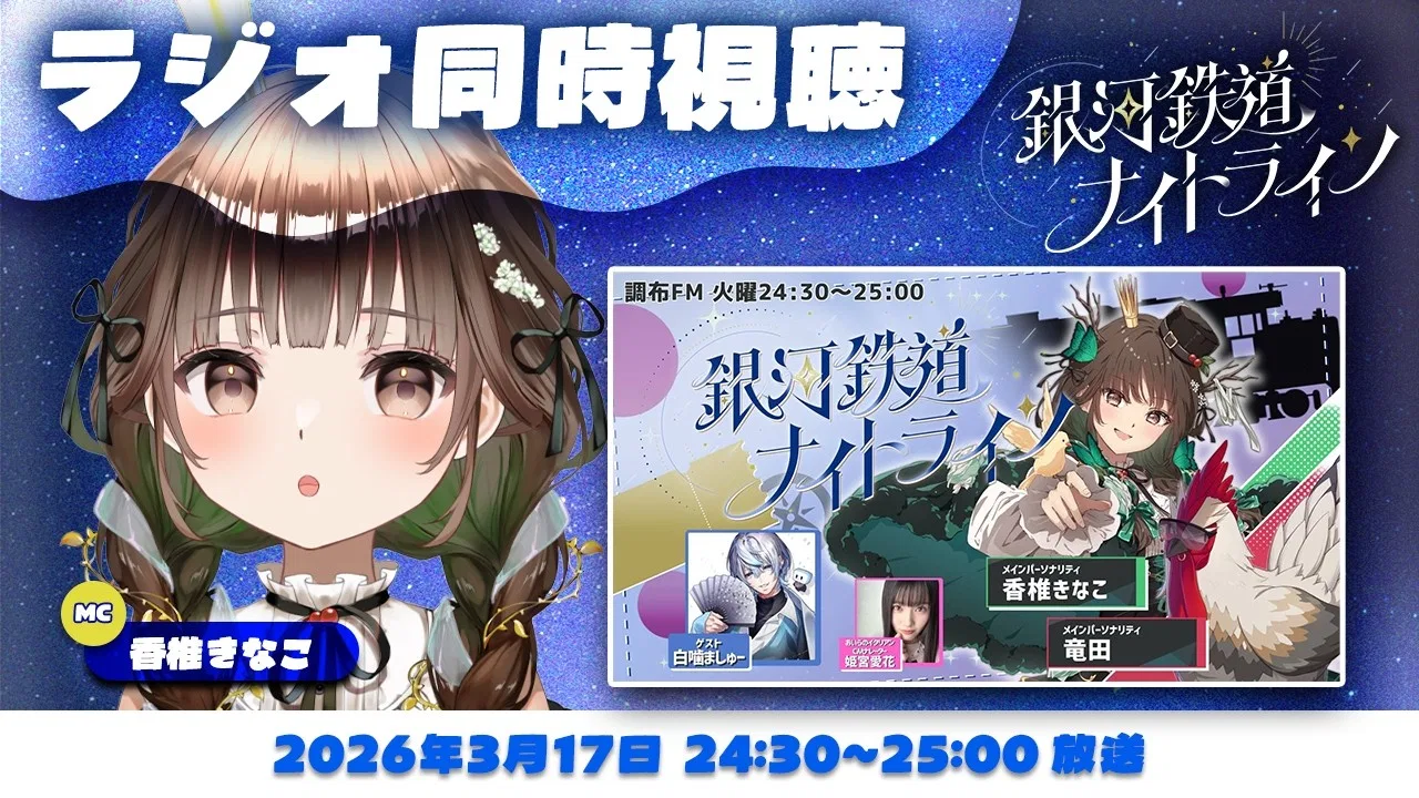 【ラジオ同時視聴】メロ声VTuber✨ ゲスト:#五木つかさ〔 #香椎きなこ ⁞ #銀河鉄道ナイトライン 〕