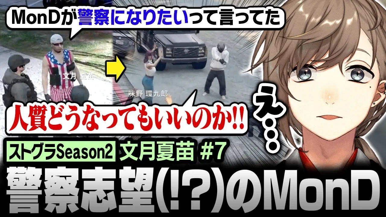 【#ストグラSeason2】警察志望(!?)のMonDの犯罪現場に遭遇する文月夏苗【にじさんじ/叶/切り抜き】