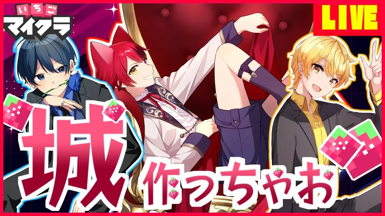 【いちごマイクラ】とうとう!?はぴあに城作っちゃうぞ!!✨🐶🐧🥔✨【はぴあに】【すとぷり】【騎士A】【AMPTAK】