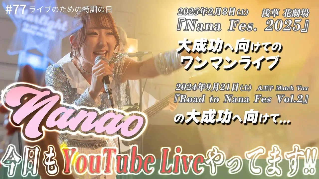 【21時~ 週4YouTube Live!!】2025年2月開催ななフェスへ向けて生信中!#077【ライブのための特訓の日】Jul 16, 2024Singer Nanao【Anime & Tokusatsu Song Cover】